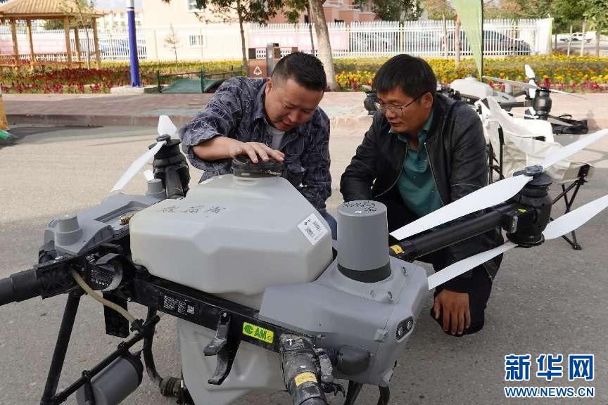 技术人员介绍农用无人机使用性能。新华网发 张珏 摄