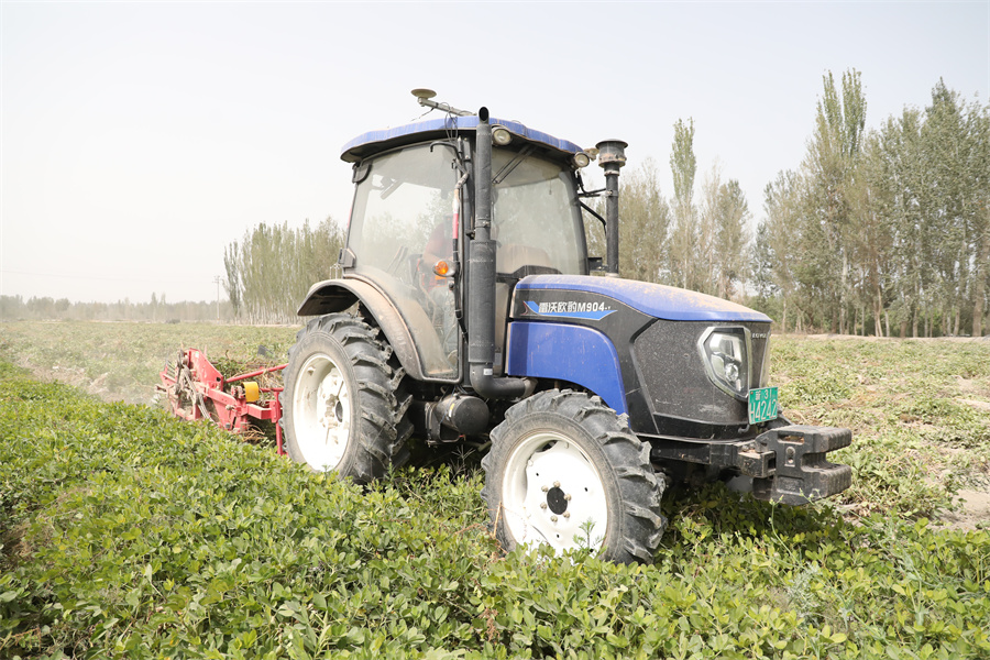 9月19日,走进疏附县布拉克苏乡伊肯其英其开村,农机手娴熟地操作着收割机,伴随着阵阵机器的轰鸣声,一垄垄花生植株被卷进收割机,一串串花生果实破土而出,颗颗饱满,平整地铺在田间。在不远处的花生地里,十几名村民正在紧锣密鼓的采收花生,摘果、装袋,忙得不亦乐乎,呈现出一派丰收喜悦的景象。花生高产质优、喜获丰收,农忙采收工作也让周边的村民多了一份收入。