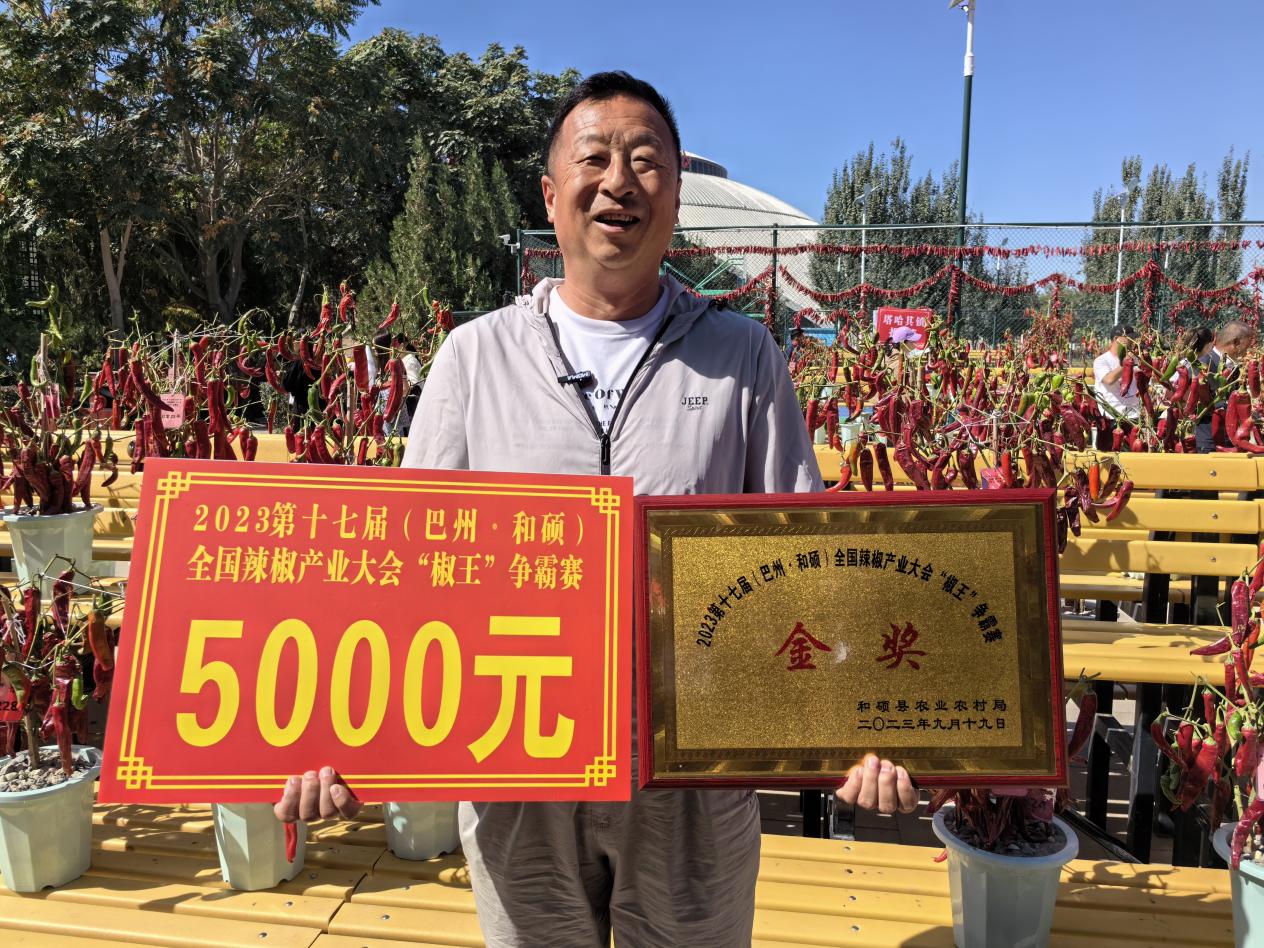 “非常高兴这次的全国辣椒产业大会能在和硕举办,为我们农户和各家辣椒生产、加工企业搭建了面对面交流的平台。相信在本次大会的助力下,和硕的辣椒种植产业一定会越来越好!”在第十七届(巴州·和硕)全国辣椒产业大会上,来自新疆巴音郭楞蒙古自治州(以下简称巴州)曲惠镇冬都呼都格村的辣椒种植户王学伟激动地说。在本次大会“椒王争霸赛”活动中,他所种植的辣椒,从200多株参赛品种中脱颖而出,成为本届比赛的“椒王”。