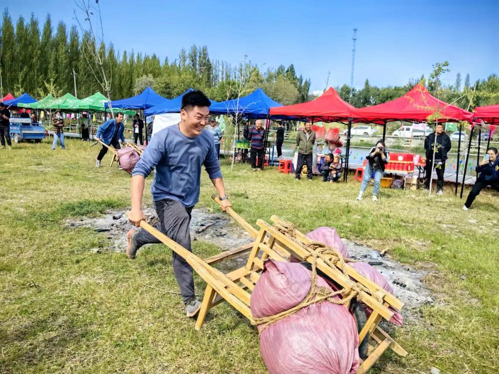 欢闹热烈的“搬运丰收”比赛现场。(乌苏市委宣传部提供)