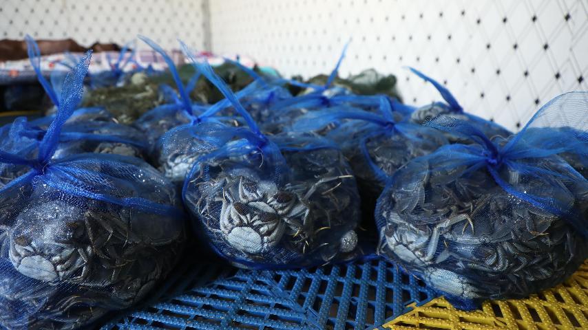 近日,记者来到新疆生产建设兵团第一师阿拉尔市胜利水库,只见养殖户李广正和工人将捕捞上来的螃蟹从船上搬至岸边。不一会儿,一袋袋露着雪白肚皮的螃蟹便装车完毕,运往冷库进行分拣和称重,之后将被装箱发往各地。