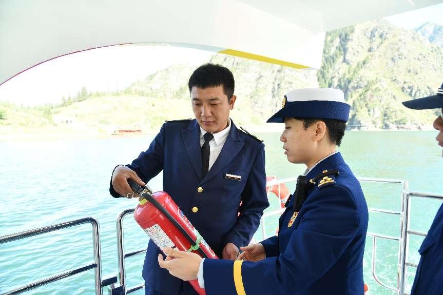 在新疆天山天池景区,消防监督员先后对天池景区游船、电动车辆以及天山天池民俗风情园等景点开展消防检查。重点检查了各场所消防安全制度是否有效落实,安全出口、疏散通道是否畅通,消防设施是否有效好用,是否存在违规用火、用电、用气等情况。针对检查中发现的问题,检查人员向场所负责人进行反馈并提出整改建议,叮嘱场所负责人要抓好日常消防安全培训,落实每日防火巡查制度,确保节日期间消防安全形势持续平稳。在景区内消防人员并向游客发放消防知识传单,倡议游客做好外出旅游期间的消防安全工作并对工作人员及经营商户开展了消防安全培训,就用火、用电、用气安全注意事项进行指导。