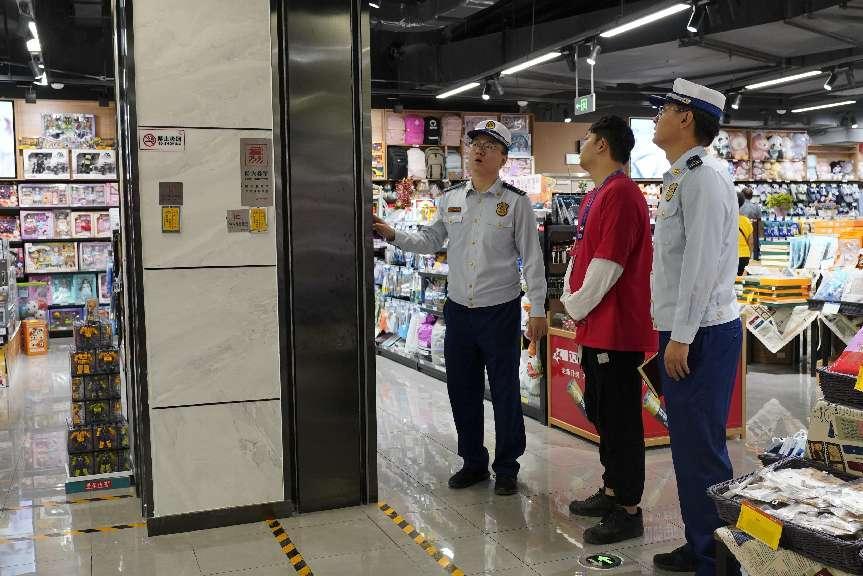 图为石河子市消防救援支队消防人员深入辖区商场开展节前消防安全检查(徐嘉奇)