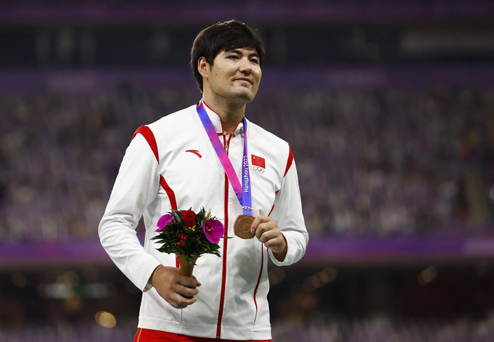 2日晚的杭州亚运会男子铁饼决赛,26岁的中国选手阿卜杜艾尼·图尔贡以61米19收获铜牌。