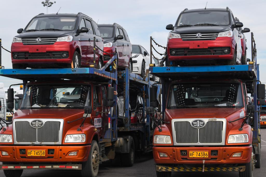 这是在霍尔果斯公路口岸等待出口的车辆(9月6日摄)。新华社记者 赵戈 摄