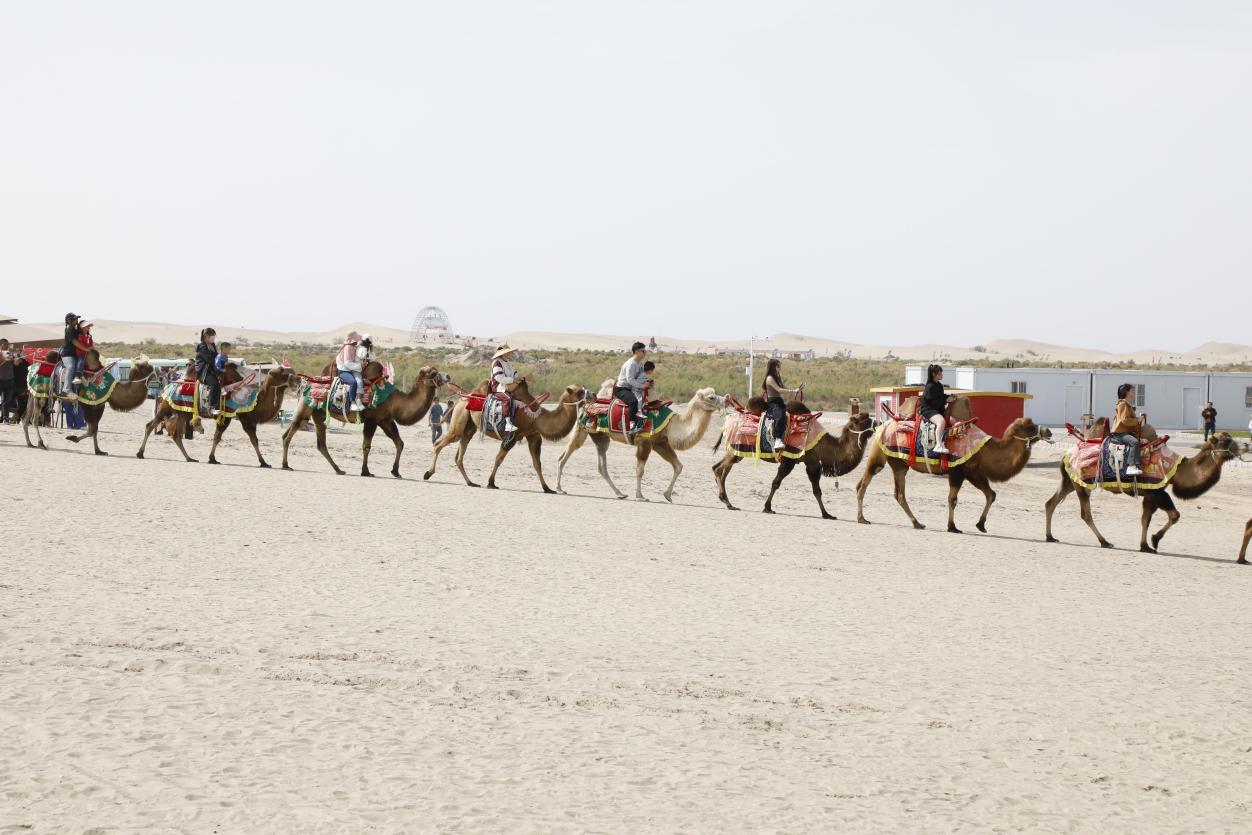 沙漠骑骆驼作为沙漠之门景区中众多游玩项目中最受欢迎的项目之一,假日旅游期间,该项目每天接待游客上百人,经济收入上万元,景区各个项目点位做好服务保障,提供优质服务。