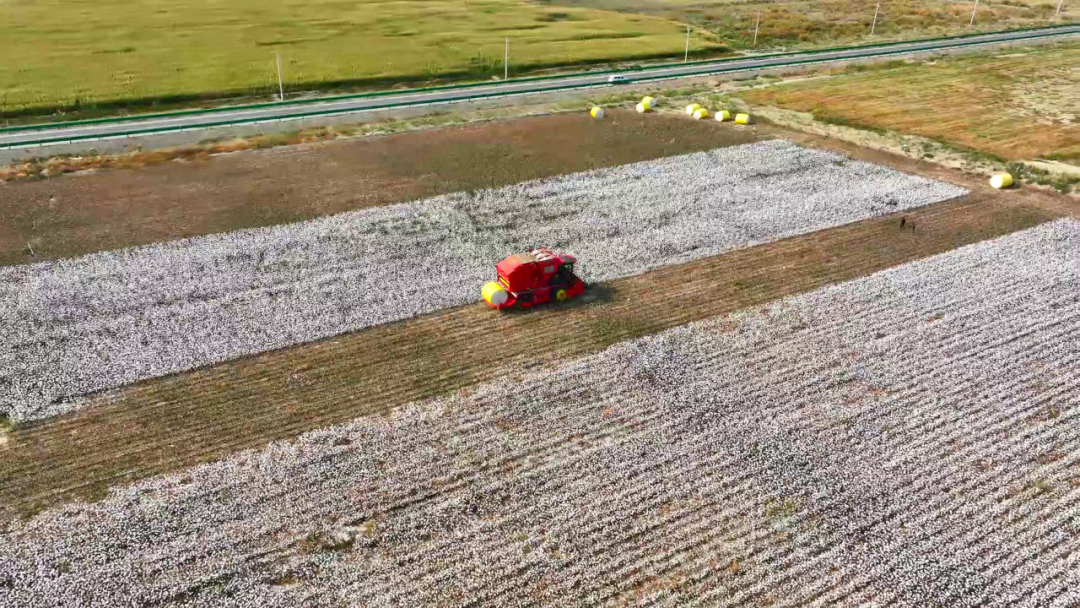 金秋十月,精河县89.7万亩棉花陆续进入采收期,各乡镇场根据实际情况安排采棉机进地抢收,棉田里一派丰收繁忙景象。