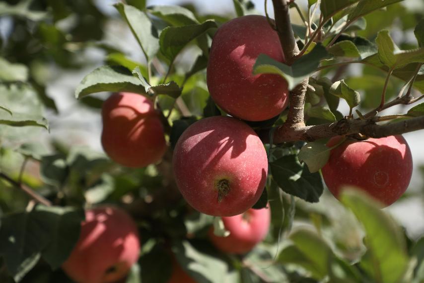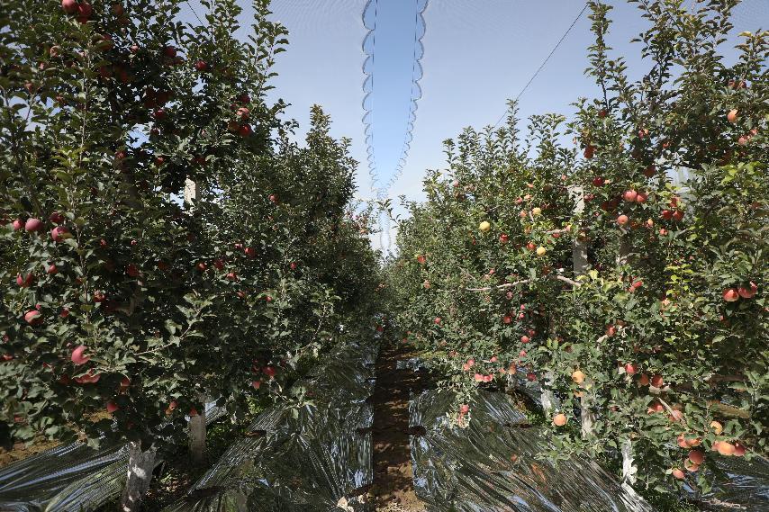 走进五团沙河镇,硕果累累的苹果树随处可见,夹杂其间的高标准示范园更是让人眼前一亮。十三连V型架高标准矮砧密植苹果示范园里,一人多高的苹果树苗被一排排V型架整齐分开,错落有致。据了解,该示范园占地95.7亩,于今年4月建园,相较于传统乔化木,示范园采用的矮砧密植种植模式优势明显,亩产量可达6至7吨。