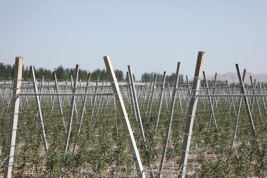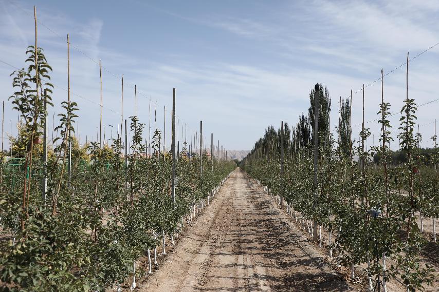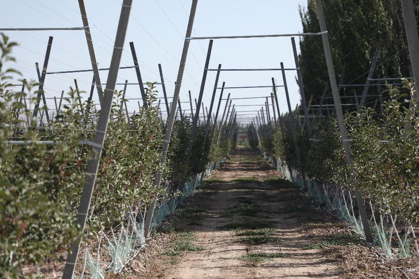 位于五团沙河镇十三连的V型架高标准矮砧密植苹果示范园。张大松 摄
