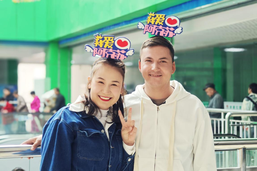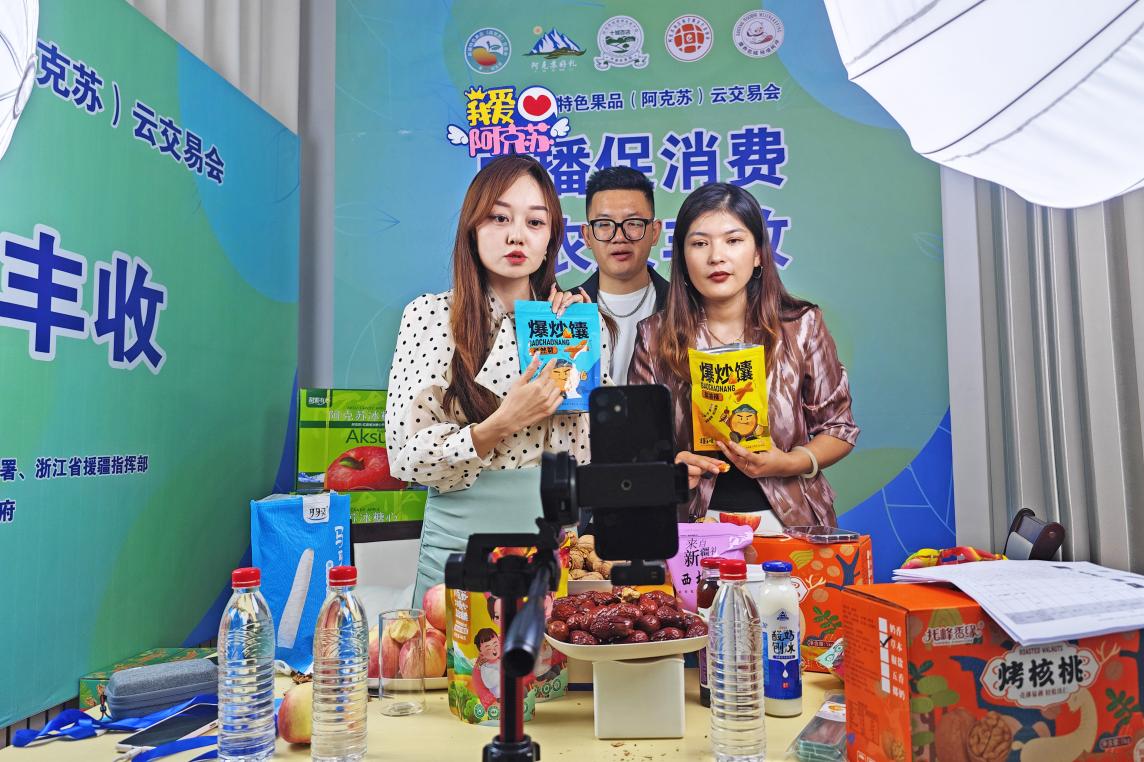 阿克苏地区电商主播正在线上直播销售新疆特色农副产品(张珏 摄)