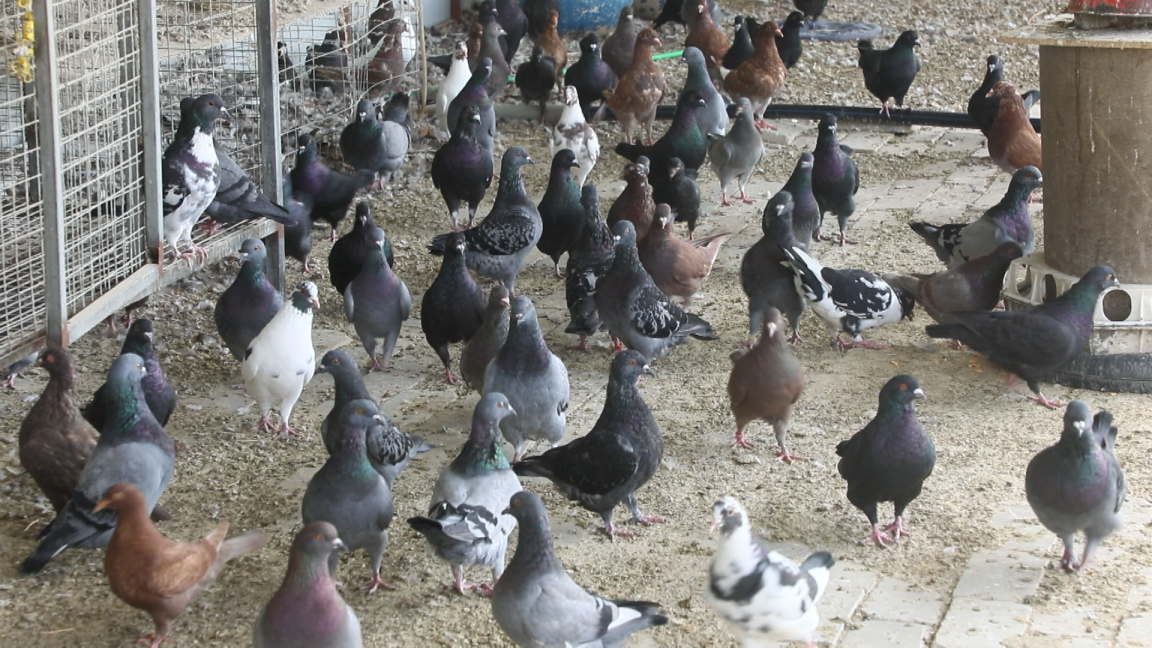 走进九连职工刘军的小院,只见一排排鸽笼整齐摆放,白色、灰色、棕色各品种的种鸽、信鸽正在啄食,几百只鸽子“咕咕”地欢叫着……
