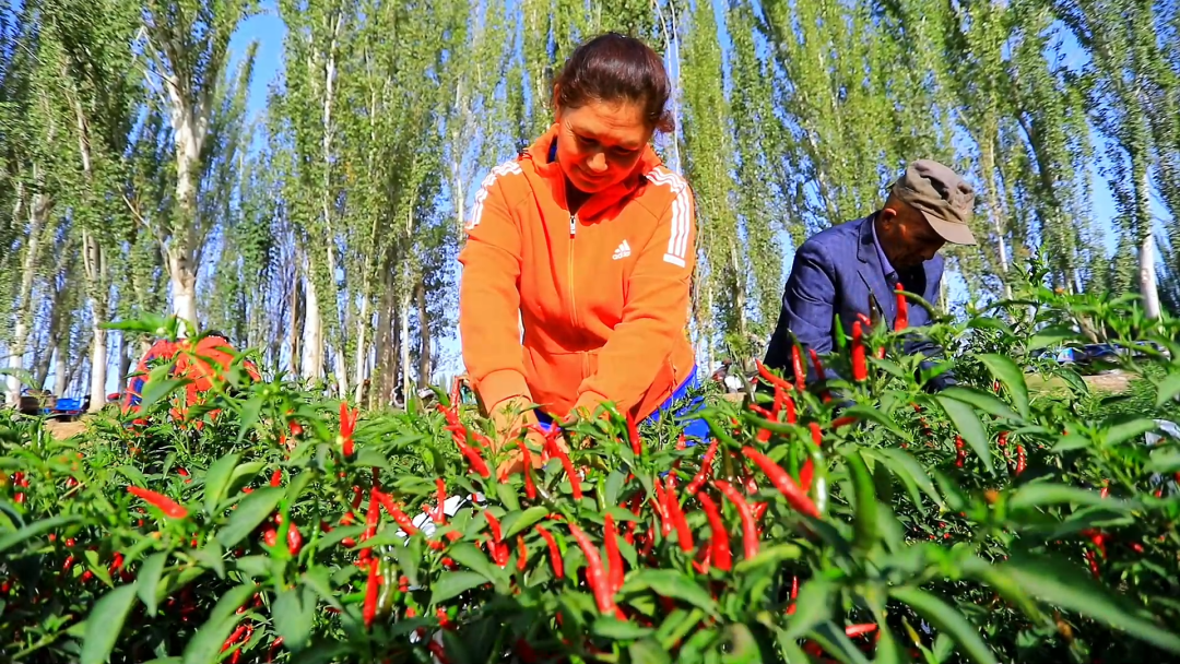 村民忙着采摘、晾晒红辣椒映衬着丰收的笑脸