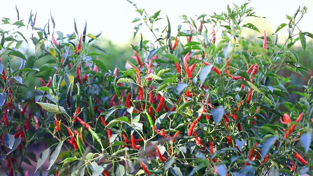 红彤彤的辣椒堆成了一座座小山
