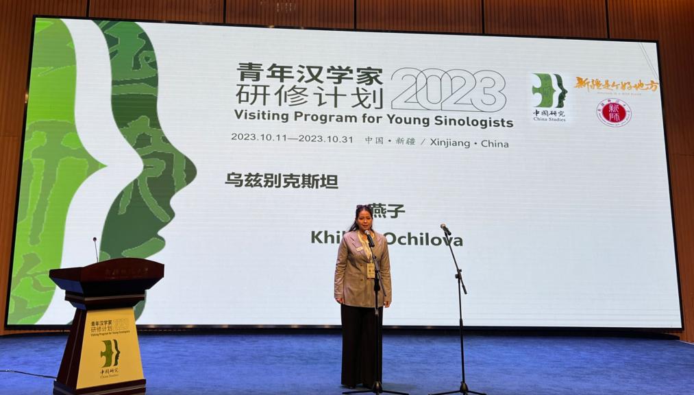 开班仪式上,来自阿联酋、菲律宾、德国、阿根廷及乌兹别克斯坦的5位青年汉学家,分别从自己的经历及研究领域分享了他们与中国的故事。其中,来自乌兹别克斯坦撒马尔罕国立外国语学院的中文教师燕子(Khilola Ochilova)在分享自己学习汉语和中国历史文化的故事时,演唱了一段《吐鲁番的葡萄熟了》,引得现场一阵欢呼。