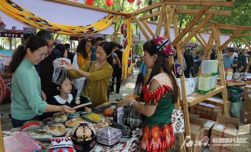 10月15日,“鲁疆情·喀什味”山东援疆“大仓东移”喀什特色产品走进山东东营市黄河口旅游区售卖。山东省对口支援新疆工作指挥部提供