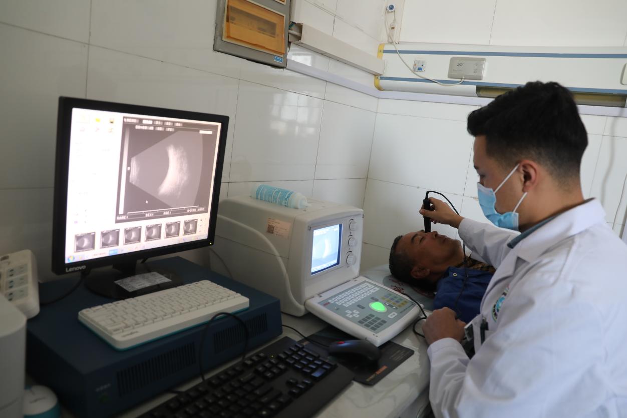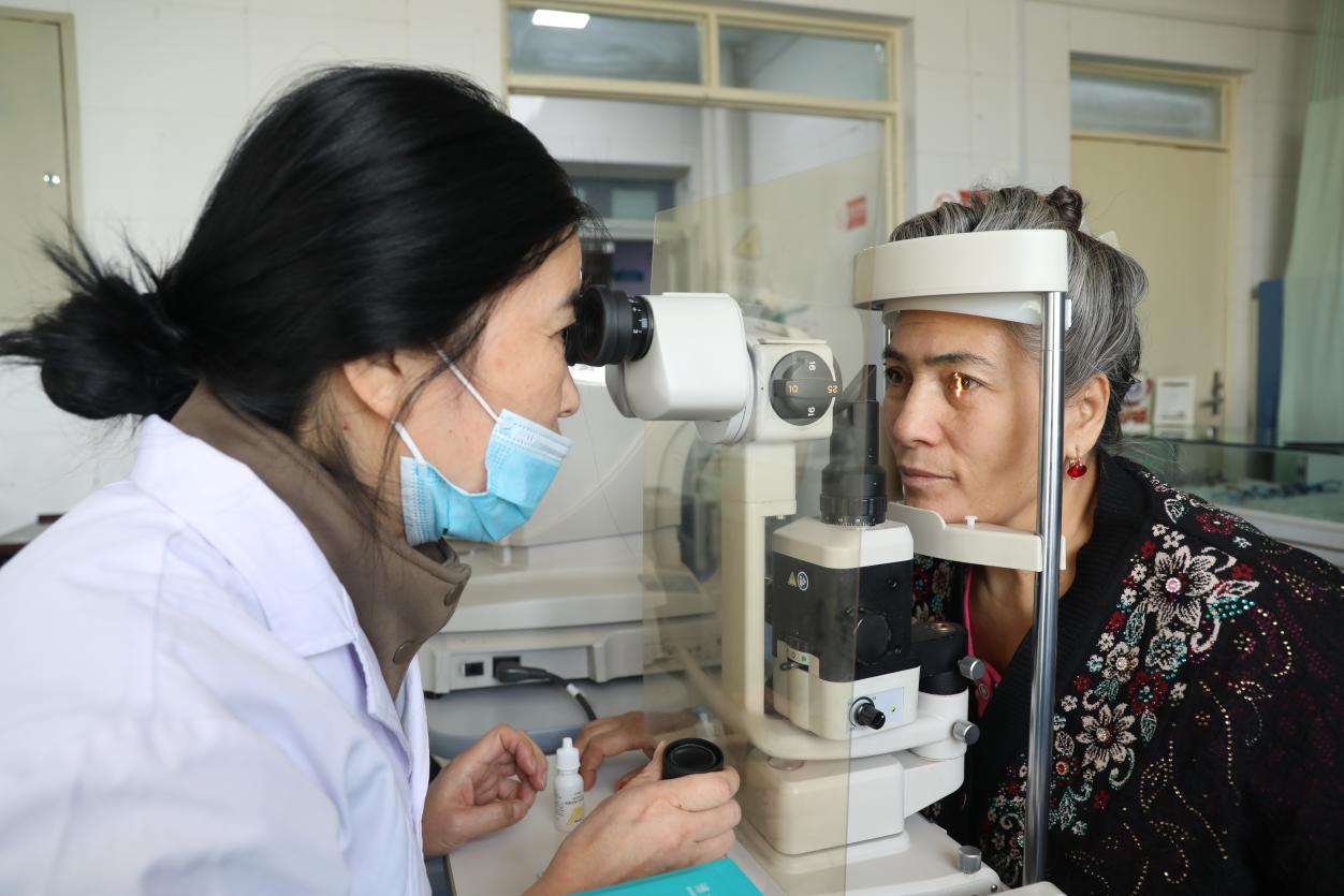 当天,在疏附县人民医院眼科,来自各乡镇、社区的疑似白内障患者接受检查。在筛查现场,医生们用专业的设备认真为每位患者的眼压、眼光、视力等进行了检查,医护人员为查出患有白内障眼疾并符合手术条件的患者做好登记工作。56岁的古丽尼沙得知这次免费手术的机会后,立即来到疏附县人民医院作筛查,获得了免费手术机会。
