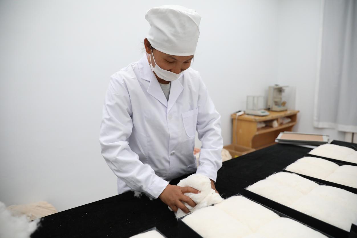 棉花颜色级分级是按照标准确定棉花质量等级的一项重要工作,是与棉花产供销经济利益密切相关的一项关键技术性工作。塔河种业阿拉尔加工厂副厂长陈真真说:“为进一步提升棉花质量的检验结果,今年,我们厂投资3万余元对棉花分级灯光检验室进行了升级改造,使原来标准为800勒克斯的光照标准提高到1000勒克斯,这样更好检验员在籽棉收购和棉花加工工作中提供质量参考。”