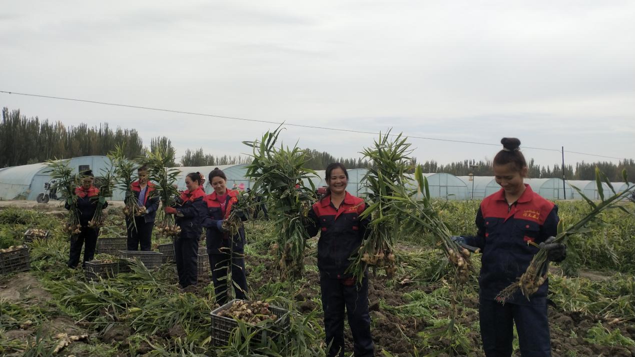 布拉克苏乡克孜坎提村今年种植生姜120亩,生姜不但市场前景广阔、价格好,而且种植生姜时间跨度长,从种植到后期田间管理及采收都需要大量的劳动力,带动了当地及周边村民就近就业增收。