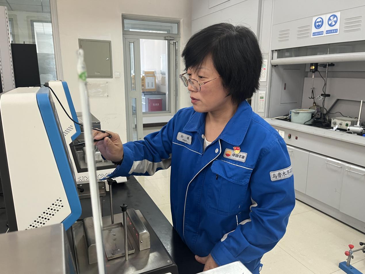 乌石化研究院工艺室主任孙艳检测设备仪器中。杨晓溢 摄