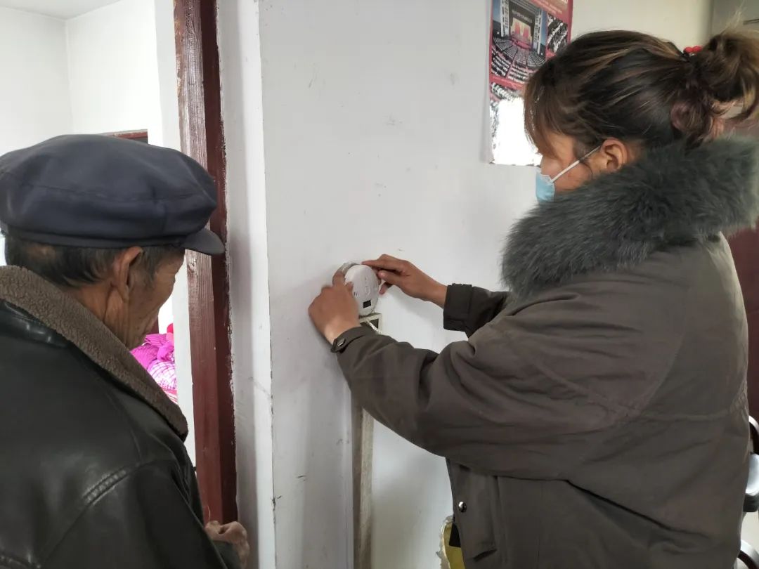每到一户人家,干部们都仔细查看疏通烟囱,确保烟筒不漏气,无堵塞;检查一氧化碳报警器能不能正常使用,耐心的告知使用方法和处理办法。