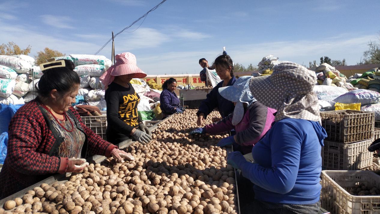 “我们每年的订单特别多,需要大量的核桃,今年,计划收购核桃5000吨,现在已经收购了1700多吨。我们将收购完的核桃在合作社清洗、分类、加工后销往上海、郑州等城市。现在我们每天能收购30-50吨的核桃,不仅帮村民找到了销售之路,我们的收入也在不断提高。”穗缘农副产品农民专业合作社负责人库尔班妮萨·吾甫尔说。