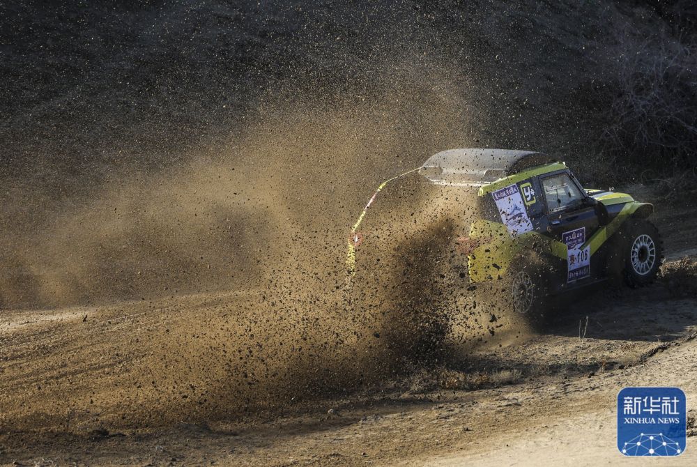 ↑车手马旭栩驾驶赛车冲上沙坡。胡虎虎 摄