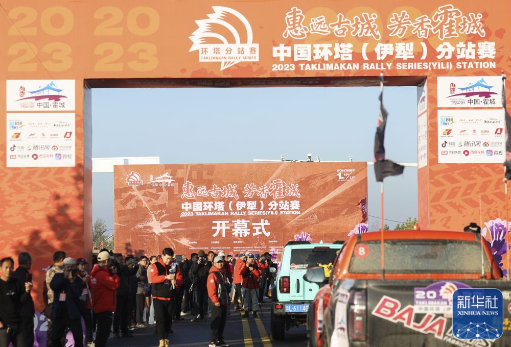 11月11日,2023中国环塔(伊犁)分站赛在新疆伊犁哈萨克自治州霍城县图开沙漠景区开幕。本届赛事设有两个比赛日,吸引了来自全国各地的100多辆赛车、130多名车手和领航员参赛,这是中国环塔(国际)拉力赛首次举行分站赛。(胡虎虎)