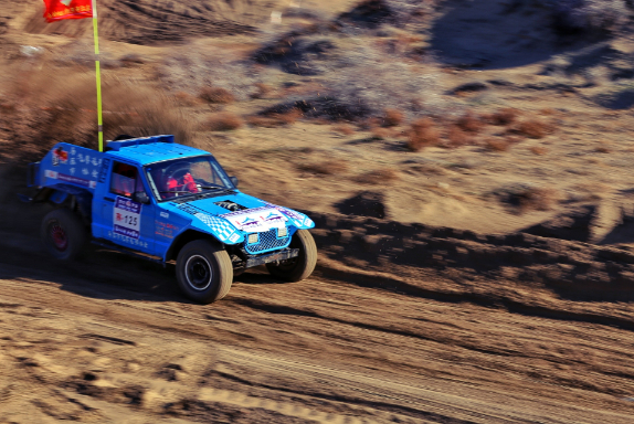 11日,赛车手们在图开沙漠中驰骋。张琪 摄