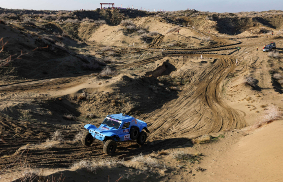这是环塔拉力赛自2005年开赛后,第一次举办分站赛。当天,来自山西、内蒙古、河南和新疆本地的93名车手、106台参赛车辆齐聚新疆伊犁哈萨克自治州霍城县图开沙漠。在选手们轰鸣的马达声中,赛事开始。