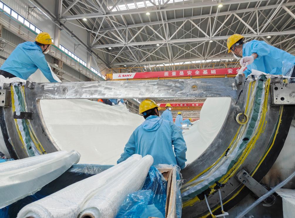 11月8日,在三一(塔城)风电设备有限公司,工人在车间加工风机叶片。新华社记者张瑜 摄