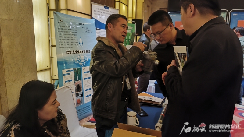11月17日,2023年新疆水利实用技术(产品)推介会上,企业工作人员正在推介产品。石榴云/新疆日报记者 刘毅摄