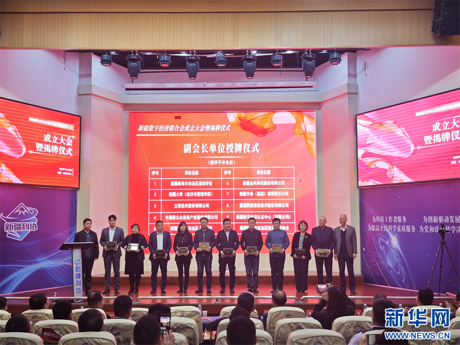 新华网乌鲁木齐11月21日电(盛元)21日,新疆维吾尔自治区数字经济联合会在乌鲁木齐市揭牌成立。新疆数字经济相关领域110多家社会组织、高等院校、科研院所和企事业单位秉承“开放协作、创新服务”理念,自愿结成团体、密切合作,为新疆数字经济聚智聚力、出谋划策。
