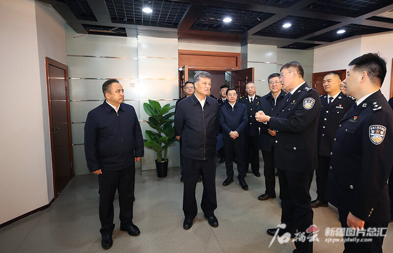 12月1日,自治区党委书记马兴瑞、自治区主席艾尔肯·吐尼亚孜先后来到新疆出入境边防检查总站、自治区粮食和物资储备局、自治区烟草专卖局走访调研。这是马兴瑞、艾尔肯·吐尼亚孜在新疆出入境边防检查总站警史馆,了解总站发展沿革情况。天山网-新疆日报记者崔志坚 摄