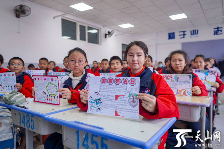 12月1日,乌鲁木齐市第113中学开展以“我与宪法”为主题的班会,班主任围绕国家宪法日的来历、设立目的和意义等方面进行细致解读,让学生了解宪法知识、弘扬宪法精神,自觉成为宪法的坚定捍卫者。