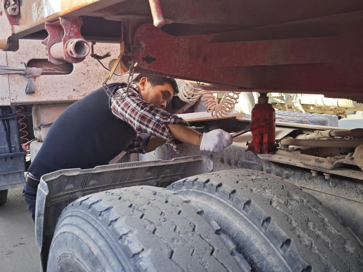 近日,记者在新疆勇刚物流发展有限公司检修车间看到,一排排货车整齐停放,敲打声、电焊声此起彼伏,6个维修工人紧密合作对货车进行维修。“我们主要检查轮胎、机油、水等情况,通过检修保证公司车辆正常运转。”车队检修部门主管刘震说。