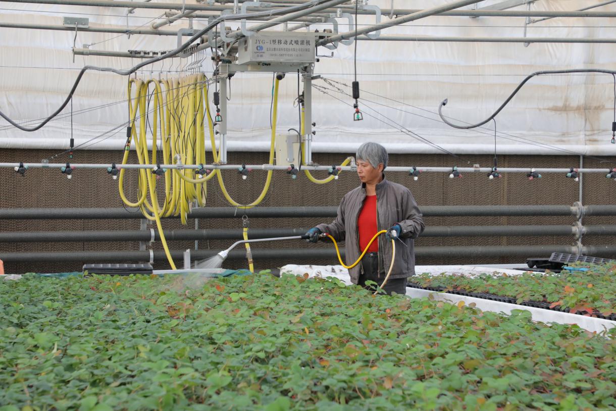 温室大棚负责人王利杰说:“温室草莓育苗项目是南疆苗木繁育中心项目中的一项,现在草莓育苗有5个温室大棚、4个日光温室和1个智能温室,从3月到9月进行育苗,今年共繁育草莓苗20万株,产品销往阿拉尔市和南疆地区。”