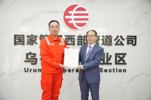 图为国家管网集团西部管道公司乌鲁木齐作业区获得全球权威认证机构中国船级社质量认证有限公司“零碳工厂”二星评价证书。刘洋 摄