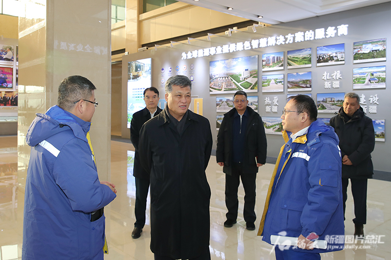 12月17日,自治区党委书记马兴瑞在乌鲁木齐调研能源化工、新材料产业发展和环境保护、安全生产等工作。这是马兴瑞来到位于乌鲁木齐甘泉堡经济技术开发区(工业区)的新特能源股份有限公司,详细了解企业生产运营、经营业绩等情况。天山网-新疆日报记者 崔志坚摄