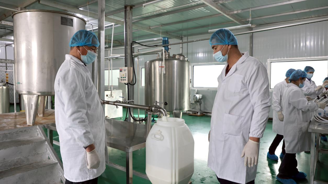 12月15日,在乌什县帅骆驼有限公司乳制品生产车间,机械轰鸣,工人们正在有序作业,空气中弥漫着浓浓的奶香,新鲜的牛奶经过过滤、高温加热、奶皮分离、发酵、冷藏等多道工序,一杯杯美味的酸奶就走出了生产线。乌什县帅骆驼有限公司是一家专业从事核桃精深加工、乳制品生产的企业,通过引进先进的生产设备和科学的生产工艺,同时,与当地多家养殖合作社和家庭养殖大户达成鲜牛奶供应协议,不仅带动了当地的经济发展,也提高了农牧民的收入水平。