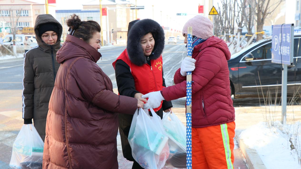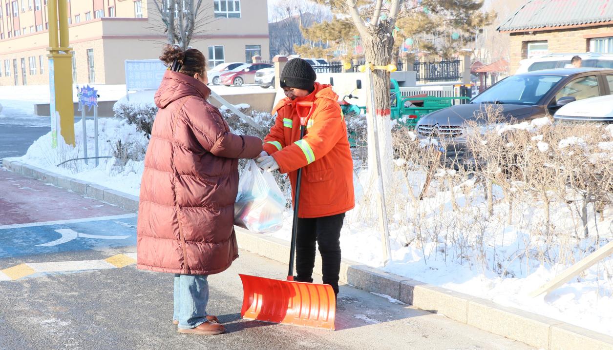 寒冷的冬季里,大家一起为安格里格镇的“美丽”与冬季里的“安全”而卖力,暖心的糕点和简单的问候温暖了他们,喜笑颜开,相谈甚欢。