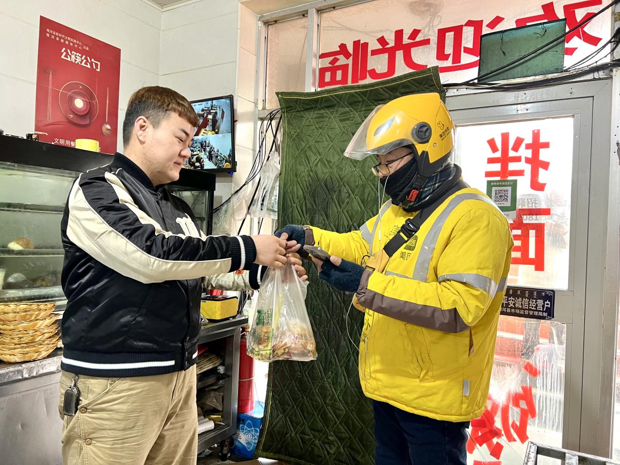 “咚咚咚……”听到敲门声的锦福社区居民李翔立马起身去开门,准时到达的外卖,缓解了他的饥肠辘辘。“这么冷的天,还准时送达,谢谢外卖员。”