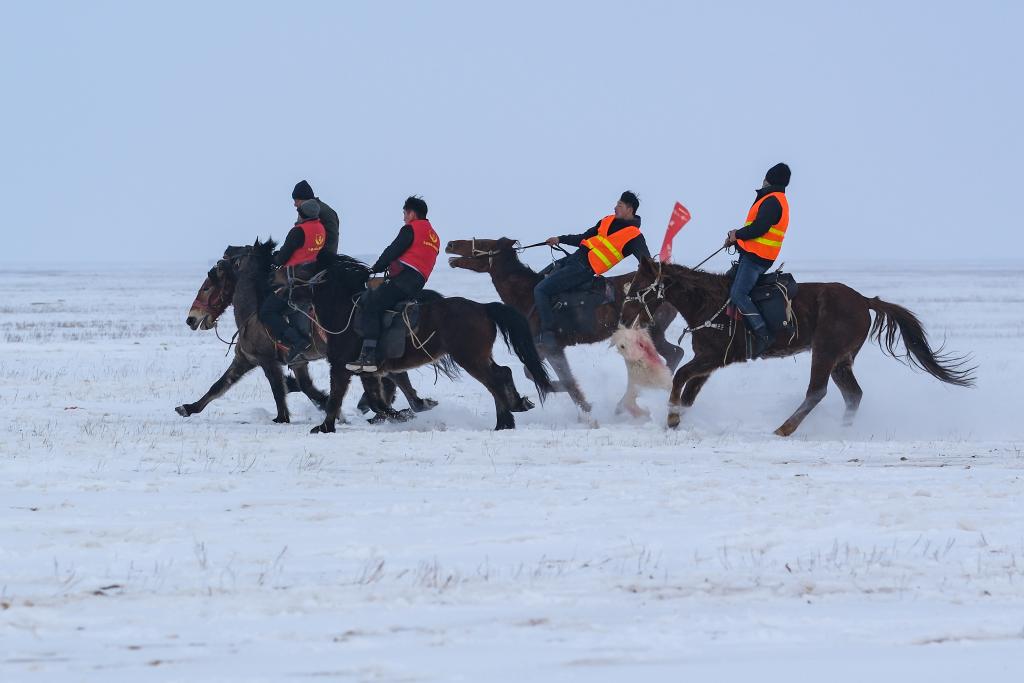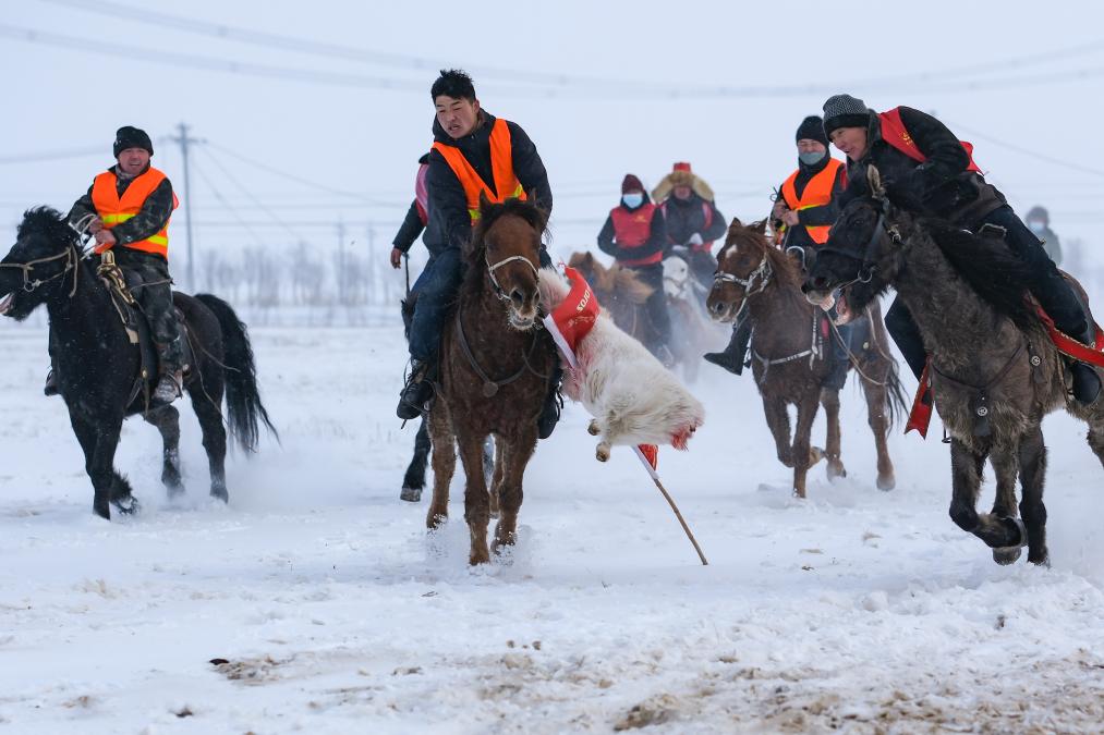 12月21日,牧民在“冬宰节”上表演叼羊。