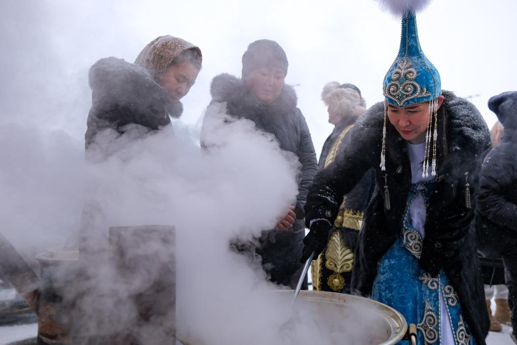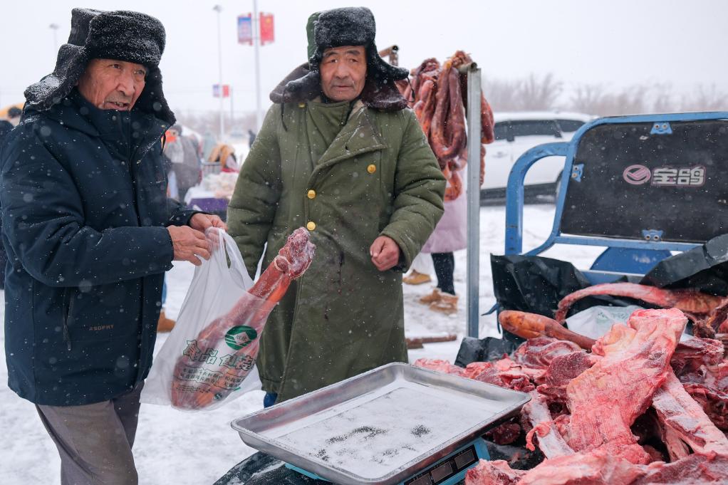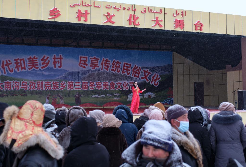12月21日,新疆木垒哈萨克自治县大南沟乌孜别克族乡举办冬宰美食文化节。“冬宰节”上,不仅有丰富的农副产品现场展销,还有姑娘追、叼羊、押加等精彩的民俗表演,吸引了大量村民和游客到场,感受节日的烟火气。