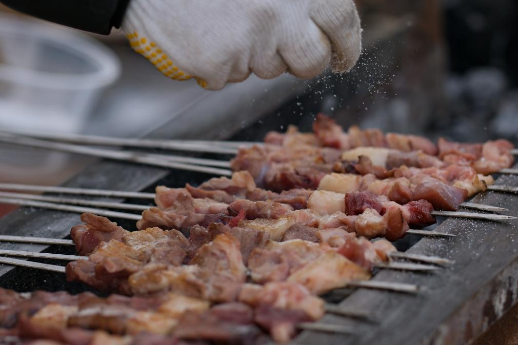 12月21日,村民在“冬宰节”集市上烤肉。