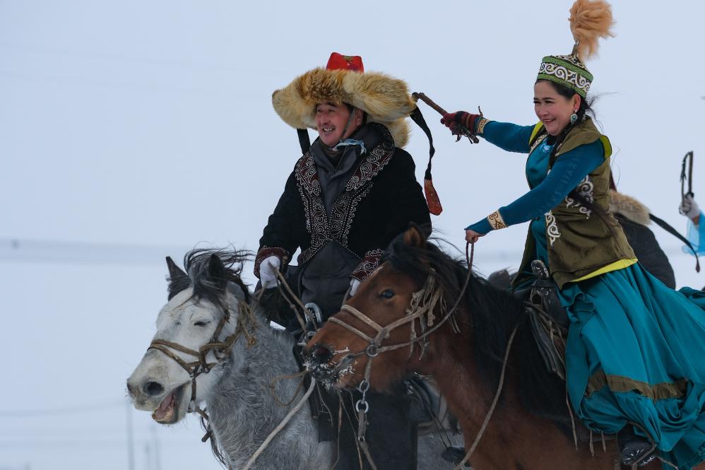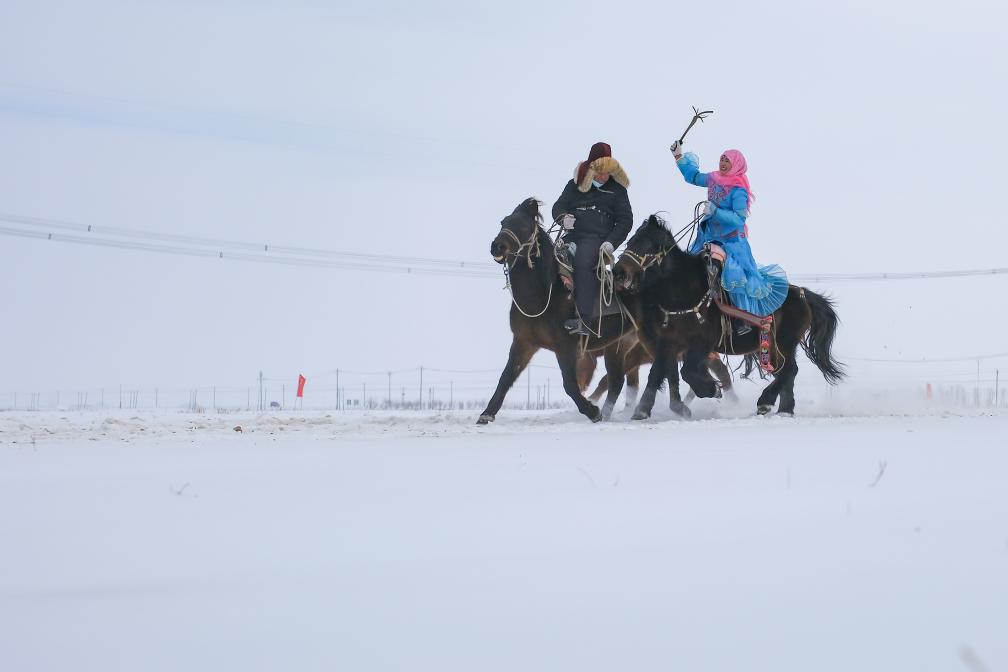 12月21日,牧民在“冬宰节”上表演姑娘追。