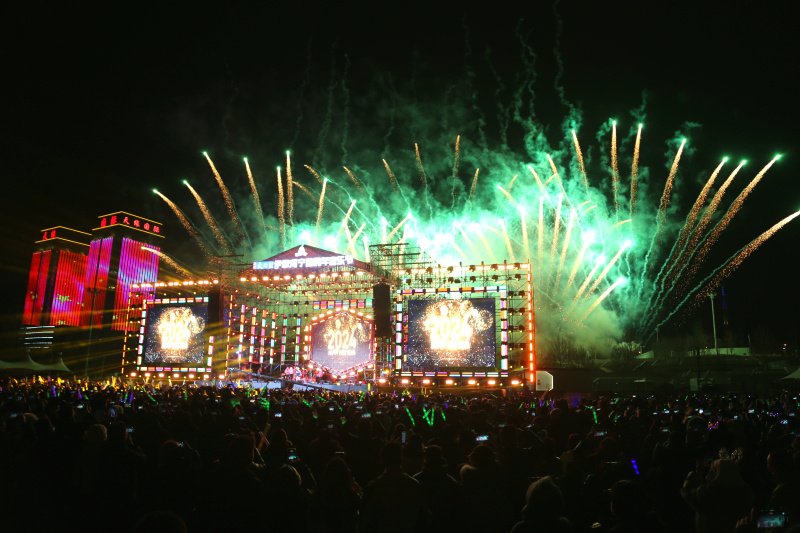 舞台上,天籁之音迎跨年。舞台外,火树银花“烟火”气。