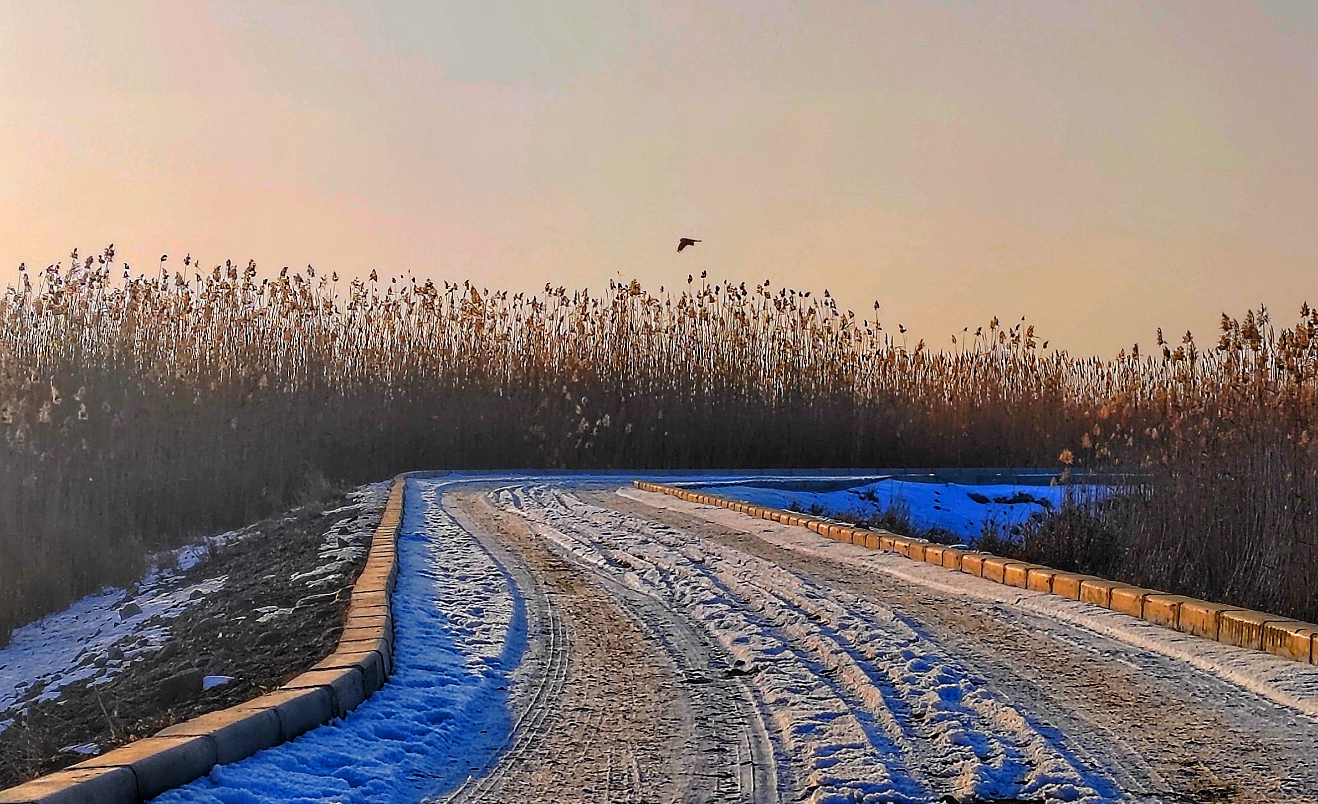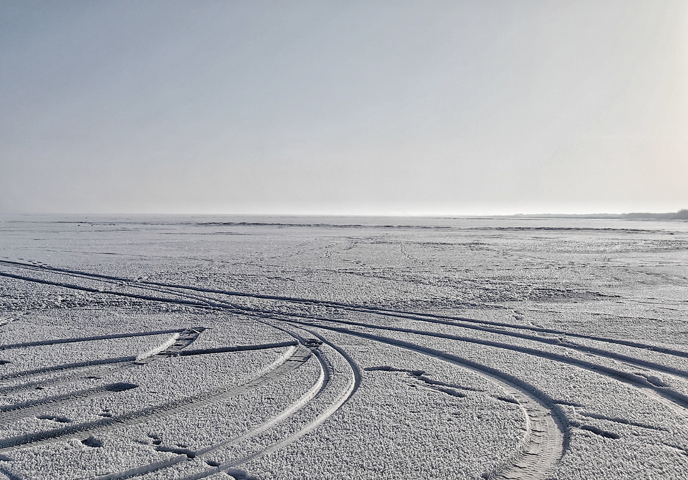 冰花上的“车轮印”。王陆斌摄