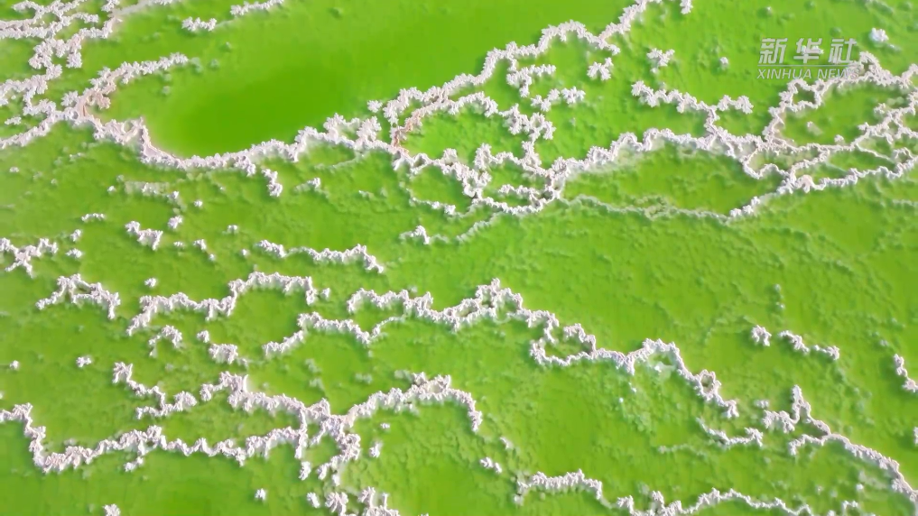 近日,位于新疆巴音郭楞蒙古自治州若羌县境内的罗布泊腹地,一望无垠的盐湖冰清玉润、微波荡漾,白色的盐花竞相“盛放”,美景如画。