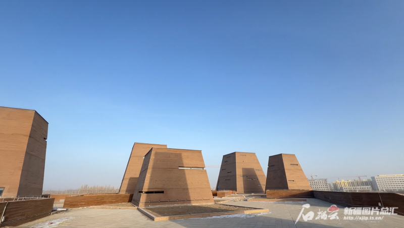 主体建筑形似“连体烽燧”的长城文化博物馆与尉犁县城交相呼应。石榴云/新疆日报记者唐堪东 摄
