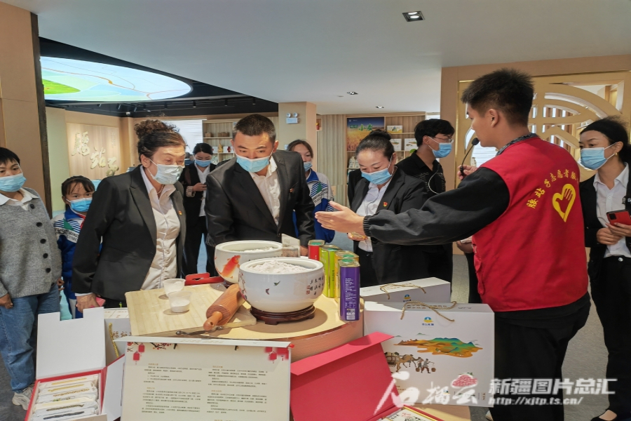 “这个场馆建于2022年6月,面积约300平方米,主要发挥两个方面的功能:一是展示若羌红枣文化;二是结合我村电商优势,培养孵化电商人才,进一步拓宽红枣销售渠道。”
